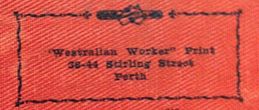 | Keywords: Westralian worker print mark label 01.jpg en w Westralian Worker Print Perth Western Australia printers mark on back of railway union booklet from the 1930's - see also Citation Westralian Worker Collection of miscellaneous political and trade union pamphlets printed by the Westralian Worker press c 1920-1950 1920 Westralian Worker http //trove nla gov au/work/159322133 18 March 2013 2013-02-26 21 18 49 Booklet printed by the Westralian Worker Westralian Worker as printer ceased by 1951 PD-Australia Uploaded with UploadWizard Publishers from Australia Westralian Worker |