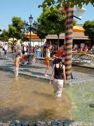 Keywords: wet fun water water fun girl young youth water basin beer garden gastronomy colorful column lantern sky blue lamp frisch fromm cheerful free
