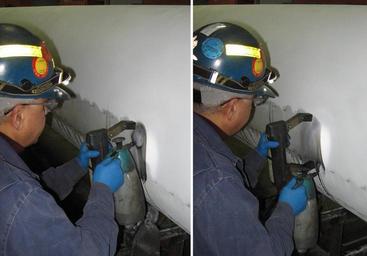 | Keywords: Wet magnetic particle testing on a pipeline.jpg A technician performs magnetic-particle inspection MPI on a pipeline to check for stress corrosion cracking The technique used here involves black particles in a wet suspension sprayed onto a surface prepared with white contrast paint a technique known in the trade as black and white MPI In the left picture the technician is holding a magnetic yoke horseshoe-type electromagnet against the pipe while spraying the liquid onto the magnetized area between the poles In the right picture the technician watches the liquid flow while checking for indications of cracking which would appear as small black lines No indications of cracking appear in this picture; the only marks are the 'footprints' of the magnetic yoke and drip marks In these pictures the pipe is sitting on a steel support in a shop after being removed from service for testing own original text self-made 1 2012-07-10 Davidmack wikipedia en <br/> Licensed under the GFDL by the author; Released under the GNU Free Documentation License Cc-zero GFDL Original upload log en wikipedia Wet_magnetic_particle_testing_on_a_pipeline jpg wikitable - 2012-07-10 16 57 2324×1624× 596586 bytes Davidmack A technician performs magnetic-particle inspection MPI on a pipeline to check for stress corrosion cracking The technique used here involves black particles in a wet suspension sprayed onto Pipelines Men at work Inspection equipment |