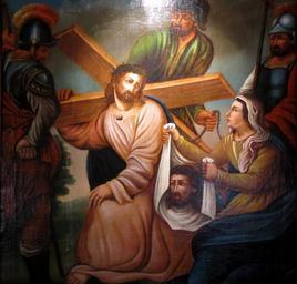 | Keywords: Weyersheim StMichel 60.JPG fr Alsace Bas-Rhin Weyersheim Eglise St Michel 1784 Chemin de croix en tableaux 1839 own 2012 Ralph Hammann cc-by-sa-3 0 Artwork / Œuvre d'art / Kunstwerk oil canvas cm Eglise St Michel Weyersheim IM67007110 object history Tableaux complétant le chemin de croix réalisés en 1839 par le même peintre Winte de Saverne other versions Ralph Hammann PD-old accession number Photographs of Weyersheim by Ralph Hammann Taken with Canon PowerShot SX20 IS Interior of Église Saint-Michel de Weyersheim Church paintings in Bas-Rhin Neoclassical church paintings in Alsace 19th-century church paintings in Alsace 1839 oil on canvas paintings in France 1839 works in Alsace Stations of the Cross in Alsace Station 6 Veronica wipes the face of Jesus |