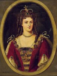 Keywords: WH 1704 Königin.jpg Bildnis einer Herrscherin mit Krone und Collane des Hosenbandordens Queen Anne Öl auf Kupfer Monogrammiert und datiert W H 1704 14 7 x 10 cm Portrait of a monarch with crown and the chain of the Order of the Garter Queen Anne Oil on copper Monogrammed and dated W H 1704 14 7 x 10 cm http //www auctions-fischer de/ Dr Fischer Kunstauktionen 1704 or maybe later in the 18th/19th century žW H PD-old Images by Dr Fischer Kunstauktionen Portraits of Anne of Great Britain Collar of the Order of the Garter in portrait paintings Ermine clothing in art Oval paintings of females Females with pearl necklaces in art Portrait paintings of women wearing crowns