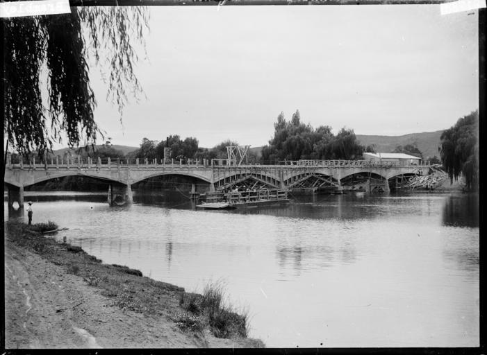 | Keywords: blackandwhite monochrome photo border outdoor water serene black and white Whakatane River with bridge under construction. A group of men are working on the underside from a barge. Photographed by William Archer Price circa 1910s. Quantity: 1 b&w original negative(s). Physical Description: Dry plate glass negative Whakatane River, with bridge under construction. Price, William Archer, 1866-1948 :Collection of post card negatives. Ref: 1/2-001779-G. Alexander Turnbull Library, Wellington, New Zealand. natlib.govt.nz/records/22772522 Whakatane River with bridge under construction. A group of men are working on the underside from a barge. Photographed by William Archer Price circa 1910s. Quantity: 1 b&w original negative(s). Physical Description: Dry plate glass negative Whakatane River, with bridge under construction. Price, William Archer, 1866-1948 :Collection of post card negatives. Ref: 1/2-001779-G. Alexander Turnbull Library, Wellington, New Zealand. natlib.govt.nz/records/22772522 |