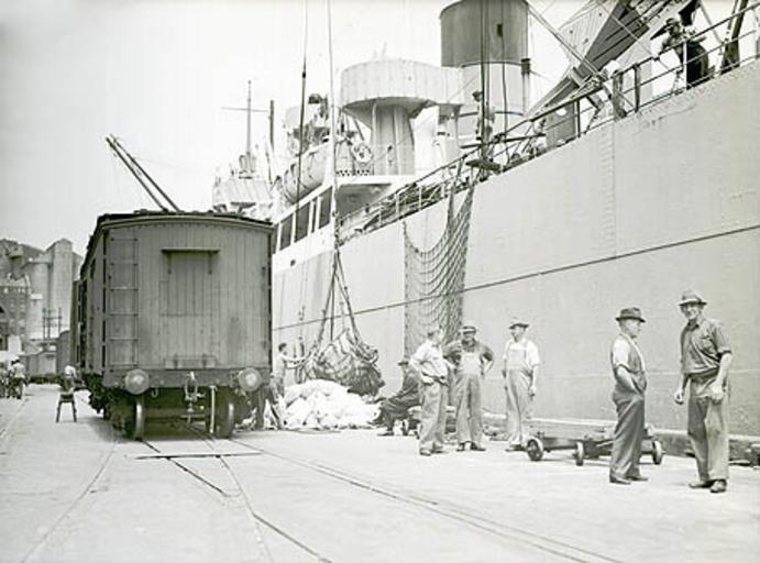 | Keywords: archives state records nsw staterecordsnsw newsouthwales blackandwhite wharf ship train people workers road outdoor snow black and white Wharf labourers unloading and loading a ship Dated: No date Digital ID: 9856_a017_A017000203 Rights: www.records.nsw.gov.au/about-us/rights-and-permissions We'd love to hear from you if you use our photos. Many other photos in our collection are available to view and browse on our website using Photo Investigator. Wharf labourers unloading and loading a ship Dated: No date Digital ID: 9856_a017_A017000203 Rights: www.records.nsw.gov.au/about-us/rights-and-permissions We'd love to hear from you if you use our photos. Many other photos in our collection are available to view and browse on our website using Photo Investigator. |