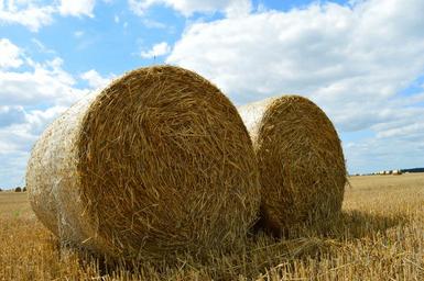 Keywords: wheat field agriculture harvesting straw bale a pile yellow farm stack sky