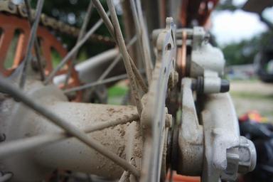 Keywords: wheel motocross orange saddle send cross spokes brake km