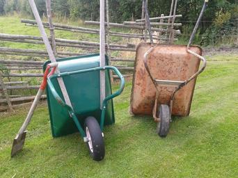Keywords: wheelbarrow the garden farm shovel garden lawn new old