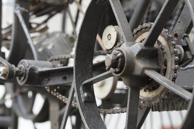 Keywords: wheels machine installation art assembled metal chain gear