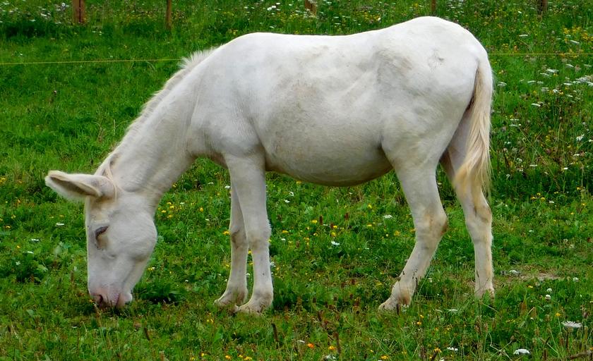 Keywords: white asses donkey donkey eats donkey eats grass cute sweet animal white donkey on meadow on the meadow