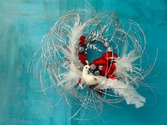 Keywords: white dove christmas seasonal decoration winter blue white silver wreath decor bow red