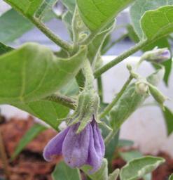 Keywords: White Eggplant fruiting flower.jpg en A purple flower that will bear fruit on a White Eggplant Own JayMGoldberg Solanum melongena flowers
