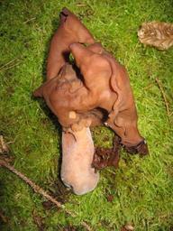 Keywords: white handle undulata helvella leucopus helvella spadicea toxic rarely mushroom forest moss autumn nature light brown green