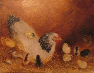 Keywords: 'White Hen in Straw with 11 Chicks' by Ben Austrian, 1912.jpg en White Hen in Straw with 11 Chicks by Ben Austrian oil on canvas 1912 LiveAuctioneers com Ben Austrian 1912 PD-old-auto 1921 Ben Austrian Paintings of chickens Austrian
