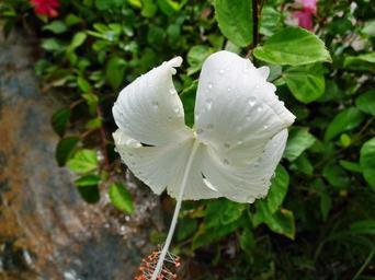 Keywords: white hibiscus rosa plant flower nature floral beautiful blossom petal beauty leaf color water drops