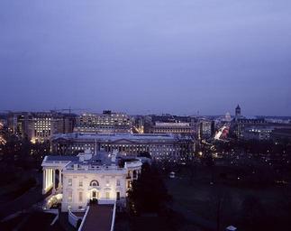 Keywords: white house mansion president home architecture building icon symbol landmark dusk evening twilight sunset washington dc structure cityscape urban view scenic skyline historic capital usa