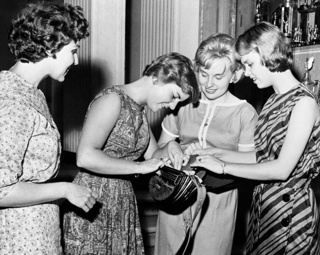 | Keywords: u.s. national archives usnationalarchives jfk presidential library jfkpresidentiallibrary blackandwhite people monochrome black and white Original Caption: White House Staff Members Accept Gifts from Colombian Group We are looking for your help in identifying unknown people in our White House Photographs collection. If you have any information about this photograph, please post a comment, including any relevant sources, for the catalogers at the John F. Kennedy Presidential Library. Thank you! Local Identifier: JFKWHP-KN-18481 Created By: President (1961-1963 : Kennedy). Office of the Naval Aide to the President. (1961 - 1963) From: Collection JFK-WHP: White House Photographs, 12/19/1960 - 03/11/1964 Contact: John F. Kennedy Library (LP-JFK), Columbia Point Boston, MA 02125-3398 Phone: 617-514-1600 Fax: 617-514-1652 Email: kennedy.library@nara.gov Production Dates: 3 August 1961 Photo Credit: Robert Knudsen. White House Photographs. John F. Kennedy Presidential Library and Museum, Boston Scope and Content Note: In this photograph, four unidentified White House staff members look at a purse during a presentation of gifts for First Lady Jacqueline Kennedy in the East Wing Lobby, White House, Washington, D.C. Persistent URL: JFK Library URL: www.jfklibrary.org/Asset-Viewer/Archives/JFKWHP-KN-18481.... Access Restrictions: Unrestricted Use Restrictions: Unrestricted Original Caption: White House Staff Members Accept Gifts from Colombian Group We are looking for your help in identifying unknown people in our White House Photographs collection. If you have any information about this photograph, please post a comment, including any relevant sources, for the catalogers at the John F. Kennedy Presidential Library. Thank you! Local Identifier: JFKWHP-KN-18481 Created By: President (1961-1963 : Kennedy). Office of the Naval Aide to the President. (1961 - 1963) From: Collection JFK-WHP: White House Photographs, 12/19/1960 - 03/11/1964 Contact: John F. Kennedy Library (LP-JFK), Columbia Point Boston, MA 02125-3398 Phone: 617-514-1600 Fax: 617-514-1652 Email: kennedy.library@nara.gov Production Dates: 3 August 1961 Photo Credit: Robert Knudsen. White House Photographs. John F. Kennedy Presidential Library and Museum, Boston Scope and Content Note: In this photograph, four unidentified White House staff members look at a purse during a presentation of gifts for First Lady Jacqueline Kennedy in the East Wing Lobby, White House, Washington, D.C. Persistent URL: JFK Library URL: www.jfklibrary.org/Asset-Viewer/Archives/JFKWHP-KN-18481.... Access Restrictions: Unrestricted Use Restrictions: Unrestricted |