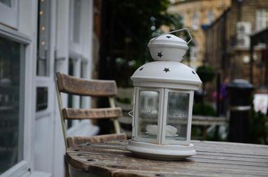 Keywords: white lantern table background lights decorations candle flame