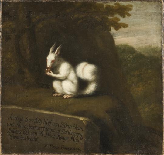 | Keywords: White Squirrel in a Landscape (David Klöcker Ehrenstrahl) - Nationalmuseum - 22284.tif Artwork Creator David Klöcker Ehrenstrahl White Squirrel in a Landscape On July 27 1696 a live albino squirrel was brought to Charles XI The king was amused by the unusual animal and commissioned his court painter to paint it Ehrenstrahl ™s animal paintings often reflect the fascination of his times with the exotic or unusual ”parrots and polar bears are interspersed with giant moose or malformed dogs Thus not only royalty was eternalized by Ehrenstrahl ™s brush And so we now have this curious squirrel with its white coat and red eyes eternally nibbling on a nut Den 27 juli 1696 blev denna albinoekorre levande förd till Karl XI Kungen roades och gav sin hovmÃ¥lare i uppdrag att avbilda det ovanliga djuret Ehrenstrahls djurmÃ¥lningar speglar ofta tidens fascination för det exotiska eller avvikande “ papegojor och isbjörnar varvas med gigantiska älgar eller missbildade hundar Det var alltsÃ¥ inte bara kungligheter som förevigades av Ehrenstrahls pensel Här sitter nu den kuriösa ekorren med sin vita päls och röda ögon och knaprar pÃ¥ en nöt i evigheten header On July 27 1696 a live albino squirrel was brought to Charles XI The king was amused by the unusual animal and commissioned his court painter to paint it Ehrenstrahl ™s animal paintings often reflect the fascination of his times with the exotic or unusual ”parrots and polar bears are interspersed with giant moose or malformed dogs Thus not only royalty was eternalized by Ehrenstrahl ™s brush And so we now have this curious squirrel with its white coat and red eyes eternally nibbling on a nut Den 27 juli 1696 blev denna albinoekorre levande förd till Karl XI Kungen roades och gav sin hovmÃ¥lare i uppdrag att avbilda det ovanliga djuret Ehrenstrahls djurmÃ¥lningar speglar ofta tidens fascination för det exotiska eller avvikande “ papegojor och isbjörnar varvas med gigantiska älgar eller missbildade hundar Det var alltsÃ¥ inte bara kungligheter som förevigades av Ehrenstrahls pensel Här sitter nu den kuriösa ekorren med sin vita päls och röda ögon och knaprar pÃ¥ en nöt i evigheten 1696 Oil on canvas Olja pÃ¥ duk Glasad Size cm 64 61 5 Framed Size cm 76 73 6 Institution Nationalmuseum Stockholm Signerad A 1696 D 27 Julÿ blef een sÃ¥dan Ekorn wid Kungzbarkare fÃ¥ngen af Stalldrengen Anders Eek och till forts i kommentarsfältet accession number 22284 NM 5234 place of creation Erik Cornelius / Nationalmuseum Nationalmuseum Stockholm cooperation project Licensed-PD-Art PD-old-auto PD-Nationalmuseum_Stockholm 1698 Media contributed by Nationalmuseum Stockholm 2016-10 Paintings in the Nationalmuseum Stockholm David Klöcker Ehrenstrahl |