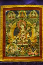| Keywords: White Tara, Tibet, 1644-1911 AD - Sichuan Provincial Museum - Chengdu, China - DSC04498.jpg en Exhibit in the Sichuan Provincial Museum 四 博物院 also known as the Sichuan Museum 251 Huanhua S Road Chengdu Sichuan China Photography was permitted in the museum without restriction This work is old enough so that it is in the public domain 2015-09-24 02 34 45 own Daderot other versions PD-old-100 cc-zero Thangka in the Sichuan Provincial Museum White Tara | ||||