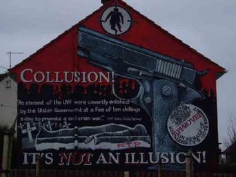 Keywords: Whiterockmuralcolusion.jpg Belfast murals Whiterock - This mural is dedicated to the claim that UVF hit squads were hired by the old Ulster government to kill catholics Own 2006 Lasse1974 Murals in Belfast 2006 in Belfast