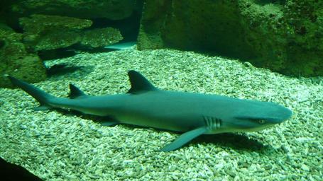 Keywords: whitetip shark reef underwater predator marine tropical white tip swimming resting