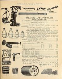 | Keywords: Wholesale price list (16189015087).jpg CURRIE BROS ' CO WHOLESALE PRICE LIST <br> 29 <br> Excelsior Weeder <br> Brass Syring-e <br> SPRAYERS AND SPRINKLERS <br> SUCCESS HAND SPRAY PUMP <br> Tlie working- parts are of solid brass and industructible bronze valves making <br> it the most durable and the best portable hand pump on the market Price 4 00 <br> GEM BARREL CART SPRAY PUiMP <br> With 4 feet of hose and Bordeaux Nozzle Price §7 50 <br> POUIVTAIIV COMPRESSED AIR SPRAYER <br> Is by far the best Sprayer we have ever seeu <br> It is simple in construction and easily operated One filling- vv ill spray 4 000 <br> hills of potatoes <br> Spraying calendar free -with each machine <br> Price 5 00 With hose attachment for spraying- trees 5 50 <br> ELECTRIC BUG EXTERMINATOR <br> With detachable Mason Jar Reservoir Price 75c <br> ScoUay's Rubber Sprinklers The florist's Sprinkler No 1 each 75c; <br> by mail 85c; doz 8 50 No 2 60c; by mail 70c; doz 5 65 No 3 50c; <br> by mail 55c; doz 4 00 No 4 45c; by mail 50c; doz 3 75 <br> Silkaliue Green twine for stringing- smilax and general florist work <br> 2 oz spools in 3 sizes F FF FFF 20c per spool; per pound of 8 <br> spools 1 25 <br> SYRINGES BRASS <br> 14x1 two sprays and one stream 3 50; 18x1 two sprays and <br> one stream best for greenhouses 4 50; tin japanned one spray 1 00 <br> Trausplanters Avery Small 50c; large 2 00 <br> Tin Foil 10 lbs 1 00; 25 lbs 2 25; 50 Hjs 4 25; 100 tbs 8 00 <br> Violet and Green Tin Foil 1 lb 50c; 10 tl5S 4 50 <br> Toothpicks Best hardwood double pointed 17 boxes 1 00 <br> Cases of 100 boxes 5 50 <br> Vi e l Toothpicks Per box of 10 000 1 50 <br> PLANT TUBS <br> Union Cypress Plant Tub Strong serviceable tubs either in natural color <br> cypress varnished or painted green <br> No <br> No 2 <br> No 3 <br> No 4 <br> No 5 <br> Less 10 per cent discount <br> Columbian Plant Tubs Made of cypress <br> varnish finish on the wcod or if wanted can finish them in oil paint but <br> to orrter only <br> Diam <br> Height <br> Price <br> 131/2 in <br> 111/2 in <br> 75 <br> 14 in <br> 13 in <br> 1 00 <br> 16 in <br> 15 in <br> 1 25 <br> 20 in <br> 18 in <br> 1 80 <br> 24 in <br> 20 in <br> 2 40 <br> Never decs <br> ly or fall apar <br> t Natural <br> 12 in diameter by 11 <br> 15 in diameter by 14 <br> 18 in diameter by 16 <br> 21 in diameter by 18 <br> in hig-h each 1 00 <br> in high each 1 50 <br> in high each 2 00 <br> in high each 2 50 <br> 24 in diameter by 20 in high each 3 00 <br> Larger sizes made to order Less 20 per cent discount <br> Tweezers For arranging flowers; 5-inch 15c; 6-inch 20 <br> Tree Primers Water's Improved 6-foot pole 75c; 8-foot pole 90c; 10-foot pole <br> 1 00; 12-foot pole 1 10; Telegraph without handles 1 25; extra knives <br> each 20c <br> WEEDERS <br> Excelsior Price each 10c; by mail 15c <br> liang's Hand Price each 20c; by mail 25c <br> Lawn Lawn each 56c; by mail 65c <br> Wire Annealed No 24 per lb 10c; 12 lbs 80c; No 26 per lb 12c-; 12 lbs 90c <br> No 28 per rb 15c; 12 lbs 1 10; No 32 per lb 20c; 12 lbs 1 35; No 36 <br> per tb 25c; 12 lbs 1 75 <br> Wheat Sheaves ABODE <br> Flat Sheaf 20 30 40 50 60 <br> Standing Sheaf A B C <br> solid 40 50 60 <br> Columbian <br> Tub <br> Wheat Sheave 42212806 133036 66130 Page 29 Text http //www biodiversitylibrary org/page/42212806 1905 10 5962/bhl title 66130 Currie Brothers Company ; Henry G Gilbert Nursery and Seed Trade Catalog Collection Biodiversity Heritage Library Currie Bros Co Wholesale price list autumn 1905 Garden Stories Bulbs Plants Catalogs Equipment and supplies Flowers Gardening Nurseries Horticulture Plants Ornamental Seeds U S Department of Agriculture National Agricultural Library bhl page 42212806 dc identifier http //biodiversitylibrary org/page/42212806 bhlGardenStories BHLinbloom bulbs plants nurseries horticulture plants ornamental u s department of agriculture national agricultural library bhlgardenstories bhlinbloom Information field Flickr posted date ISOdate 2015-01-26 CC-BY-2 0 BioDivLibrary https //flickr com/photos/61021753 N02/16189015087 2015-08-25 05 55 48 cc-by-2 0 PD-old-70-1923 Wholesale price list Photos uploaded from Flickr by Fæ using a script |