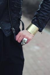 Keywords: wide bangle bracelet gold-tone gold polished hand hands ring rings leather jacket cuff