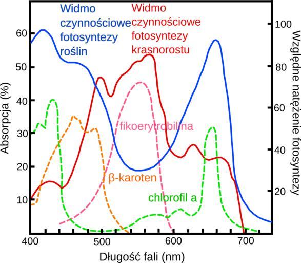 Keywords: Widmo czynnosciowe.svg en PhAR - Photosynthesis active radiation pl Widma czynnościowe fotosyntezy roślin i krasnorostów own Pisum 2008-12-17 Chlorophyll SVG absorption spectra