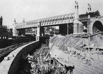 Keywords: Wien Otto-Wagner-Brücke 1898.jpg de Wien Otto-Wagner-Brücke über das Wiental Vienna Museum Friedrich Strauß 1898 PD-Art Brücke über die Zeile 1898 in Vienna