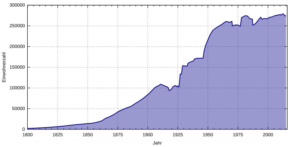| Keywords: Wiesbaden population.svg en Wiesbaden population statistics since 1800 de Einwohnerentwicklung von Wiesbaden seit 1800 own ; data from de Einwohnerentwicklung_von_Wiesbaden Gorgo 2011-03-13 Gnuplot script to generate this plot gnuplot <source lang gnuplot > /usr/bin/gnuplot gnuplot 4 2 / Ubuntu 8 10 input set timefmt d m Y set datafile separator ; output unset key set style data lines set style fill transparent solid 0 4 set grid set xdata time set xlabel 'Jahr' set xrange '01 01 1800' '31 12 2015' set xtics 788400000 set mxtics 5 set format x ' Y' set ylabel 'Einwohnerzahl' set ytics 50000 set format y ' 0f' set term svg size 800 400 font Arial 10 set output 'wiesbaden_population svg' plot '-' using 1 2 with filledcurves below x1 lt rgb 'dark-blue' lw 2 30 06 1524;1200 30 06 1629;915 30 06 1648;400 30 06 1699;730 30 06 1722;1329 30 06 1800;2239 30 06 1807;3071 30 06 1816;4608 30 06 1820;5466 30 06 1830;8059 03 12 1840;11648 03 12 1843;12269 03 12 1849;13992 03 12 1852;14433 03 12 1855;16059 03 12 1858;18054 03 12 1861;20800 03 12 1864;26600 03 12 1867;30085 01 12 1871;35836 01 12 1875;43674 01 12 1880;50238 01 12 1885;55454 01 12 1890;64670 02 12 1895;74133 01 12 1900;86111 01 12 1905;100953 01 12 1910;109002 01 12 1916;101506 05 12 1917;93609 08 10 1919;97566 31 12 1919;98222 31 12 1920;103065 31 12 1921;104658 31 12 1922;105962 31 12 1923;103226 31 12 1924;105067 16 06 1925;102737 31 12 1925;102779 31 12 1926;133610 31 12 1927;133705 31 12 1928;153712 31 12 1929;153617 31 12 1930;153259 31 12 1931;153137 31 12 1932;153218 16 06 1933;159755 31 12 1933;160464 31 12 1934;162009 31 12 1935;163270 31 12 1936;164422 31 12 1937;165139 31 12 1938;170500 17 05 1939;170354 31 12 1940;171700 31 12 1945;172083 29 10 1946;188370 31 12 1947;201673 31 12 1948;209100 13 09 1950;220741 31 12 1951;229230 31 12 1952;233579 31 12 1953;238657 25 09 1956;244994 06 06 1961;253280 31 12 1961;254442 31 12 1962;256719 31 12 1963;258675 31 12 1964;260610 31 12 1965;260331 31 12 1966;259580 31 12 1967;258536 31 12 1968;259471 31 12 1969;260828 27 05 1970;250122 31 12 1970;250285 31 12 1971;251969 31 12 1972;251840 31 12 1973;252457 31 12 1974;252017 31 12 1975;250592 31 12 1976;249199 31 12 1977;270298 31 12 1978;271436 31 12 1979;273267 31 12 1980;274464 31 12 1981;274449 31 12 1982;273703 31 12 1983;270444 31 12 1984;267467 31 12 1985;266623 31 12 1986;266542 25 05 1987;251871 31 12 1987;252461 31 12 1988;254209 31 12 1989;256885 31 12 1990;260301 31 12 1991;264022 31 12 1992;268069 31 12 1993;270873 31 12 1994;266081 31 12 1995;267122 31 12 1996;267669 31 12 1997;267726 31 12 1998;267187 31 12 1999;268716 31 12 2000;270109 31 12 2001;271076 31 12 2002;271553 31 12 2003;271995 31 12 2004;274076 31 12 2005;274611 31 12 2006;275562 31 12 2007;275849 31 12 2008;276742 31 12 2009;277493 31 12 2010;275976 folgende Daten am 30 06 06 2016 aus de Artikel hinzugefuegt 31 12 2011;278919 31 12 2012;278641 31 12 2013;273871 31 12 2014;275116 e</source> Cc-zero Temporal population graphs of Hesse Wiesbaden History of Wiesbaden Images with Gnuplot source code |