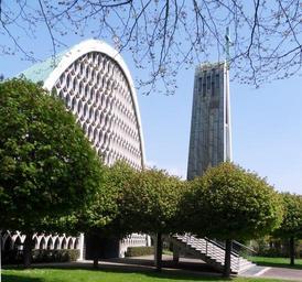Keywords: WiesbadenEvHeiligGeistKircheDrususstraßeSWSüdfront.JPG de Evangelische Heilig-Geist-Kirche in Wiesbaden Drususstraße Blick auf die Südfassade mit Glockenturm von Südwesten own Brühl 2010-04-20 Heilig-Geist-Kirche Biebrich