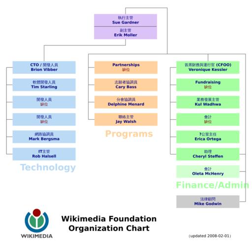 Keywords: Wikimedia Foundation organization chart-zh-hant.svg Organization chart of WMF as of 2008-02-01 translated from m Image Wikimedia Foundation organization chart svg into zh-hant according to the terminology in m Translation requests/WMF/Current staff/zh-hant English version of editable SVG format created by User Guillom from a public domain PDF uploaded by user Eloquence both originally on the Wikimedia Foundation wiki translated 2008-02-06 Users Eloquence Guillom and njt Eloquence Guillom and njt Wikimedia Foundation organizational charts |