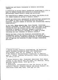 | Keywords: Wikipedia Article on FADICA 001.jpg en An article on the principal philanthropic organization for private foundations assisting Catholic actitivities From FADICA Francis J Butler 10/06/2010 Foundations and Donors Interested in Catholic Activities FADICA A consortium of private family foundations established in 1976 to help its members become more effective in directing their philanthropy toward Catholic causes and activities The organization ™s members account for nearly two-thirds of all U S based foundation giving to Catholic causes FADICA has effectively represented lay philanthropic perspectives in a number of ways in its interaction with the Catholic hierarchy and with leaders of national and international charity organizations In her book Being Catholic Now Kerry Kennedy interviews FADICA ™s president Dr Frank Butler about the scope of FADICA ™s interaction with the Catholic church The charitable group according to Kennedy ™s interview managed to provide a constructive and catalytic influence in a number of areas including the just treatment of Catholic sisters FADICA has been a force for financial accountability and transparency within the Catholic church by being instrumental in starting the National Leadership Roundtable on Church Management and influencing the hierarchy to adopt stronger stewardship policies FADICA Guides Catholic Grantmaking By Katherine Noble Goodman Foundation News and Commentary July/August 2002 Vol 43 Number 4 Pp 16-17 The Catholic Philanthropic Tradition in America Mary J Oates Indiana University Press Bloomington IN 1995 p 139 ff Being Catholic Now Prominent Americans Talk About Change in the Church and the Quest for Meaning Kerry Kennedy Random House 2009 pp 88-92 Ibid p 88 Governance Accountability and the Future of the Catholic Church Francis Oakley and Bruce Russert ed Continuum Press New York 2004 pp 153-160 Text pages |