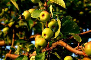 Keywords: wild apple wild growth fruits nature edible tasty fruit eat immature wildwachsend nutrition summer healthy of course sun semi mature shine sour grow tree leaves small