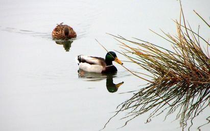 Keywords: wild ducks swim lake cloudy autumn birds water nature