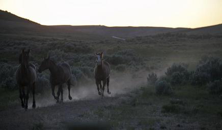 Keywords: wild horses feral wildlife landscape dawn panorama desert herd sunrise
