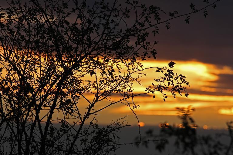 Keywords: wild rose bush spiny evening sun evening sky abendstimmung sunset afterglow dusk evening nature sky sun landscape silhouette light setting sun horizon back light twilight cloud formations