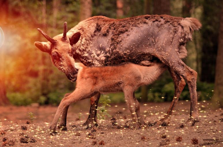 Keywords: wild wild animals dam young animal suckle forest nature mammals animals