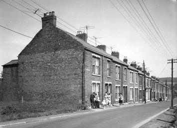 Keywords: washington sunderland wilden terrace wildenterrace columbia bricks wall terrace house terracehouse may 1965 may1965 newall's chemical works newallschemicalworks 50th anniversary 50thanniversary 2014 creation washington new town washingtonnewtown established 24 july 1964 24july1964 changes modern housing modernhousing development transformation washington development corporation washingtondevelopmentcorporation planning design building new town newtown social heritage socialheritage industry evolve preservation memories past and present pastandpresent wheels bicycle people gathering pavement road gutter grass plant leaves roof chimney telegraph pole television antenna televisionantenna cylinder suit shoes stripes pattern trousers coat blazer shirt hair dress skirt shorts belt hat bag blouse hand arm legs feet window glass curtain door slope shadow intriguing street life streetlife blackandwhite monochrome outdoor architecture black and white Wilden Terrace, Columbia, May 1965 (TWAM ref. DT.TUR/2/36063SS). The terrace was located near Newall's Chemical Works. 2014 marks the 50th anniversary of the creation of Washington New Town. It was officially established on 24 July 1964 and since then the area has witnessed massive changes. Old pit terraces have been replaced with modern housing, thousands of new jobs have been created, great new shopping and leisure facilities have been built and a derelict industrial landscape has been reclaimed and transformed. To celebrate this anniversary Tyne & Wear Archives has brought together a set of images of Washington as it was 50 years ago. These were commissioned by Washington Development Corporation, which was responsible for planning, designing and building the New Town. The images are an important reminder of Washington's past. They reflect how much of the town has changed beyond recognition. The town will continue to evolve over the next fifty years and we must make sure that the memories continue to be preserved. (Copyright) These images are Crown Copyright. We're happy for you to share these digital images within the spirit of The Commons. Please cite 'Tyne & Wear Archives & Museums' when reusing. Certain restrictions on high quality reproductions and commercial use of the original physical version apply though; if you're unsure please email info@twarchives.org.uk. Wilden Terrace, Columbia, May 1965 (TWAM ref. DT.TUR/2/36063SS). The terrace was located near Newall's Chemical Works. 2014 marks the 50th anniversary of the creation of Washington New Town. It was officially established on 24 July 1964 and since then the area has witnessed massive changes. Old pit terraces have been replaced with modern housing, thousands of new jobs have been created, great new shopping and leisure facilities have been built and a derelict industrial landscape has been reclaimed and transformed. To celebrate this anniversary Tyne & Wear Archives has brought together a set of images of Washington as it was 50 years ago. These were commissioned by Washington Development Corporation, which was responsible for planning, designing and building the New Town. The images are an important reminder of Washington's past. They reflect how much of the town has changed beyond recognition. The town will continue to evolve over the next fifty years and we must make sure that the memories continue to be preserved. (Copyright) These images are Crown Copyright. We're happy for you to share these digital images within the spirit of The Commons. Please cite 'Tyne & Wear Archives & Museums' when reusing. Certain restrictions on high quality reproductions and commercial use of the original physical version apply though; if you're unsure please email info@twarchives.org.uk.