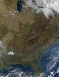 | Keywords: Wildfires in Eastern U.S. , Image of the Day DVIDS857727.jpg en Drought conditions have plagued the Appalachian Mountains in October and November and low relative humidity combined with dry leaves on the ground has created extreme fire danger in many eastern states This true-color MODIS image made from data collected on November 9 2001 shows smoke from numerous fires indicated in red predominantly in southern West Virginia image center Kentucky to the southwest and Tennessee south The fires at least some of which are likely the result of arson have burned thousands of acres throughout the region Unfortunately for those people fighting the fires the fire danger is likely to remain high with no significant rain expected in the near term South of Lake Erie the southernmost of the Great Lakes numerous aircraft contrails crisscross Ohio Water vapor emitted with engine exhaust condenses in the cold dry air at high altitudes leaving behind a trail of condensation--a contrail NASA Identifier EasternUS_fires_2001313 2011-06-26 Glenn Research Center https //www dvidshub net/image/857727 857727 2013-02-08 20 06 WASHINGTON D C US PD-USGov Images from DoD uploaded by Fæ Satellite pictures of the United States Wildfires in the United States November 2001 in the United States |