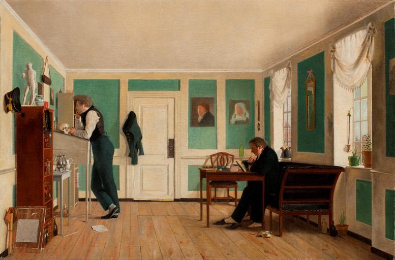 | Keywords: Wilhelm Bendz, Interiør fra Amaliegade, ca. 1829.jpg Artwork Q21043212 Creator Wilhelm Bendz Title Zimmer an Amaliegade Interiør fra Amaliegade Artillerikaptajn Carl Ludvig Bendz stÃ¥ende og læge Jacob Christian Bendz siddende ~ 1829 oil canvas cm 32 3 49 Institution Hirschsprung Collection object history da Købt 1901 1st upload http //hjem get2net dk/silseth_jan/BENDZ/Bendz _Interior_fra_Amaliegade _ca 1829 jpg 2nd upload photo delivered via e-mail to the uploader from Den Hirschsprungske Samling accession number 31 http //www hirschsprung dk/Image aspx id 22 col 5 www hirschsprung dk and https //www kulturarv dk/kid/VisVaerk do vaerkId 89356 www kulturarv dk PD-old-auto-1923 1832 Other versions thumb left 300px Wilhelm Bendz “ Interior from Amaliegade Captain Carl Ludvig Bendz standing and Dr Jacob Christian Bendz seated “ Google Art Project jpg Wilhelm Bendz Amaliegade Zimmerbilder Rooms in Denmark 1829 paintings 1820s genre paintings 1820s interiors in art Images released by the Hirschsprung Collection in highresolution 19th-century paintings in Denmark 1829 works in Denmark |