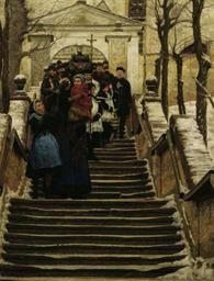 Keywords: Wilhelm Bernatzik Winter 1888.jpg title Winter Winter Hiver oil on canvas 96 x 78 cm Institution Belvedere Inv -Nr 797 Das Bild zeigt eine Ansicht der Kirchenstiege von Mistelbach dem Geburtsort des Künstlers <ref> Kulturnachrichten aus dem Weinviertel Heft 2 2015</ref> Österreichische Galerie Belvedere http //digital belvedere at/emuseum/media/view/Objects/6563/2166 t state flow c181dea5-24f6-4970-8200-fff84f53271c 1888 Wilhelm Bernatzik Wilhelm Bernatzik Österreichische Galerie Belvedere 1888 paintings Winter in art Stairs in art Churchgoing in art Pfarrstiege Mistelbach PD-old