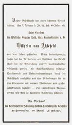 | Keywords: Wilhelm von Ahlefeldt (1818-1897) 03.jpg de Todesanzeige für Carl Wilhelm von Ahlefeld t 1818-1897 Herr auf Treuholz und Wirklicher Geheimer Rat Landesdirektor Mitglied der Regierung in Plön und Klosterprobst von Uetersen own reproduktion original photo is more than 100 years old Umbekannt 1897 PD-old Wilhelm von Ahlefeldt 1818 “1897 Death notice |