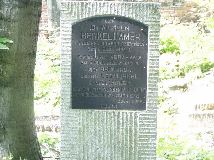 Keywords: WilhelmBerkelhamerGrave.JPG en Grave of Wilhelm Berkelhamer Own Birczanin date New Jewish Cemetery in Kraków