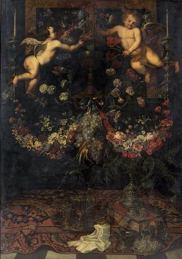 | Keywords: Willem Gabron - Adoration of the Holy Sacrament.jpg Artwork creator Willem Gabron en Adoration of the Holy Sacrament 1650 - 1678 Oil canvas cm 280 170 monogrammed lower right GVL G ¦ Sold at Tajan on 16 December 2014 lot 4 http //auction tajan com/en/asp/fullCatalogue asp salelot 9953+++++++4+ refno ++471272 saletype Other versions PD-old-100 Willem Gabron Eucharist in art 17th-century still-life paintings of flowers | ||||