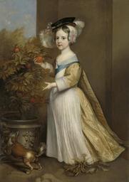| Keywords: Willem III (1650-1702), prins van Oranje, als kind Rijksmuseum SK-A-3889.jpeg nl Portret van Willem III prins van Oranje als kind Staand ten voeten uit bij een oranjeboom in een pot met een oranjeappel in de rechterhand Bij zijn voeten en springend hondje Op het hoofd een zwarte baret versierd met struisvogelveren en een juwelenband Height cm 135 Width cm 95 exhibition history 2007-2008 Kinderen van Oranje Vorstelijke kinderportretten toen en nu Apeldoorn 2003-2003 Oranienbaum - Huis van Oranje Dessau-Rosslau Institution Rijksmuseum Technique oil canvas object history Acquisition 1955-04-12 object type Potential derivatives exist check http //commons wikimedia org/w/index php search Rijksmuseum+SK-A-3889 this search PD-US PD-old-100 Data and photography rights All data and all images made available through the API are either in the public domain or are subject to a CC0 license https //www rijksmuseum nl/en/api/terms-and-conditions-of-use cc-zero place of creation http //www rijksmuseum nl/collectie/SK-A-3889 Willem III 1650-1702 prins van Oranje als kind Q17335288 Uploaded with GWToolset Willem III 1650-1702 prins van Oranje als kind Rijksmuseum SK-A-3889 http //www rijksmuseum nl/media/assets/SK-A-3889 Images uploaded by Fæ Images from the Rijksmuseum DEFAULTSORT 1654; William III of England Adriaen Hanneman Paintings by Adriaen Hanneman in the Rijksmuseum Amsterdam Portrait paintings of William III of England 1654 oil on canvas paintings 1654 portrait paintings Male 17th-century oil portraits of boys at full length 17th-century portrait paintings in the Netherlands 17th-century portrait paintings with dogs Paintings of boys' dresses Portrait paintings of boys with dogs Portrait paintings of standing boys Portrait paintings of boys wearing hats Portraits with fruits Yellow clothing in art male |