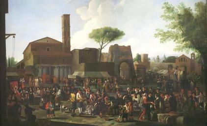 Keywords: Willem Reuter - A Roman Market.jpg en Willem Reuter A Roman Market Oil on canvas 118 7 x 193 0 cm 1669 Norton Simon Art Foundation 1669 own Creator Willem Reuter PD-old-100 Willem Reuter Bamboccianti Flemish paintings in the Norton Simon Museum Reuter