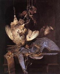 | Keywords: Willem van Aelst - Stilleven met jachttoebehoren en wild.jpg oil canvas cm 68 54 Institution Staatliche Kunsthalle Karlsruhe object history credit line accession number PD-old-100 17th-century still life paintings in Germany 17th-century still life paintings of dead game by Willem van Aelst Hunting trophies in art Cuisine of the Netherlands in art Paintings by Willem van Aelst Baroque paintings in Karlsruhe Paintings in Staatliche Kunsthalle Karlsruhe Aelst Stillife With Hunting Equipment 1668 paintings in Baden-Württemberg 1660s still life paintings |
