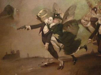 | Keywords: WILLETTE Adolphe,1884 - Parce Domine - Detail 005.jpg - Detail 005 Au-dessus de la Seine à Paris une élégante Parisienne aux ailes de papillon emporte l'âme de Pierrot saisi par la mort loin de la fête loin d'un Pierrot effaré - Above the Seine in Paris an elegant Parisian woman with butterfly wings takes the soul of the dead Pierrot away from the festive crowd and an appalled Pierrot - Montmartre - 1884 Oil on canvas Montmartre Own other versions PD-old-auto 1926 Details of Parce Domine by Adolphe Willette |