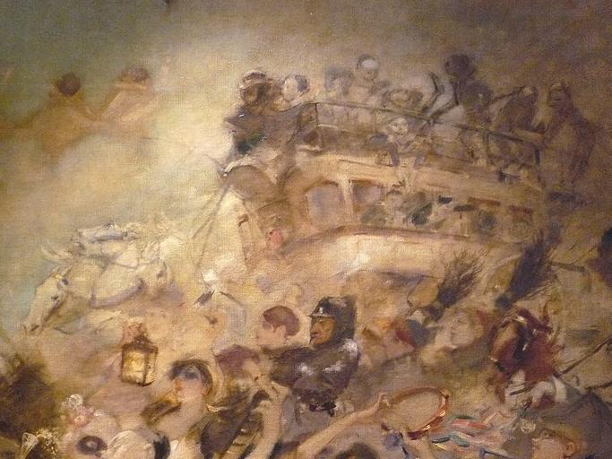 | Keywords: WILLETTE Adolphe,1884 - Parce Domine - Detail 092.jpg - Detail 092 - Un attelage à imperiale au milieu d'une foule en fête - A double-deck carriage in the middle of a festive crowd - Montmartre - 1884 Oil on canvas Montmartre Own other versions PD-old-auto 1926 Details of Parce Domine by Adolphe Willette |