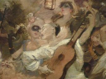 | Keywords: WILLETTE Adolphe,1884 - Parce Domine - Detail 035.jpg - Detail 035 - Pierrot chantant et jouant de la guitare au milieu de la foule en fête - Pierrot singing and playing guitare in the middle of the festive crowd - Montmartre - 1884 Oil on canvas Montmartre Own other versions PD-old-auto 1926 Details of Parce Domine by Adolphe Willette |